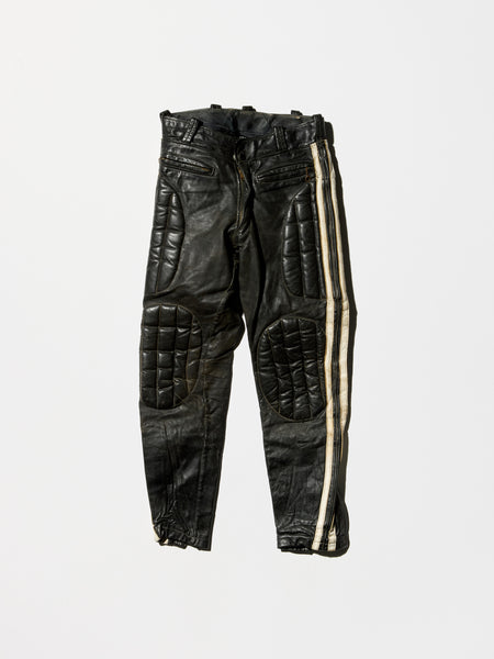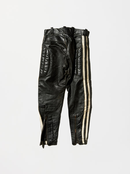 Old Motocross Pants.Cool Black Leather×White 2Lines.Tight Silhouette.So Cool Aging Face.Super Cool.