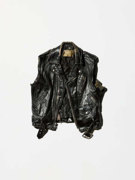 70s 《Perfecto by Schott 》Made in U.S.A.Cool Cut off Sleeve.Cool Aging Leather Face.Cool Boro Detail.Super Cool.