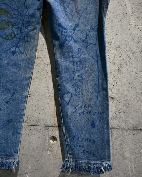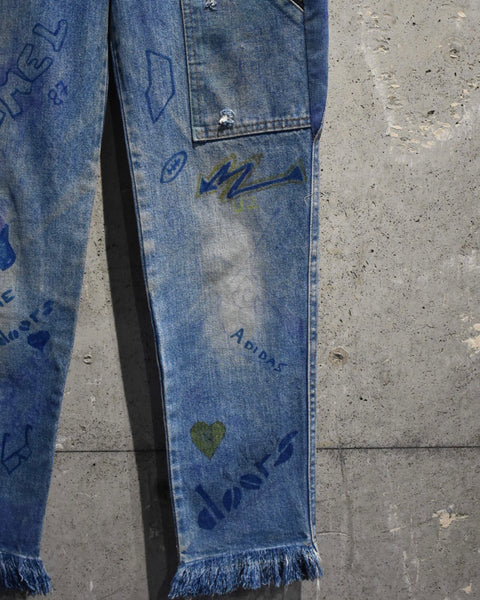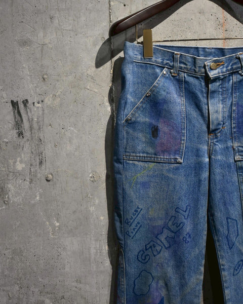 Vintage 1980s Hand Painted Fringe Denim Pants